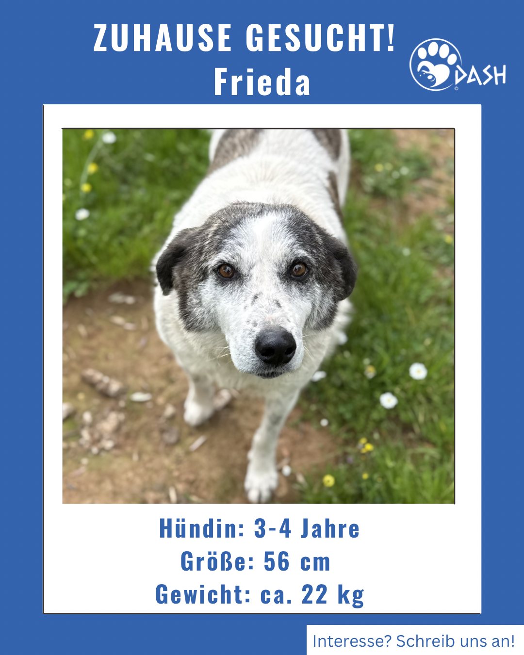 Man spürt bei jedem Blick, dass diese Hündin leise leidet, ohne sich aufzudrängen, ohne gesehen zu werden. Frieda braucht Menschen mit Herz, die ihr Ruhe, Sicherheit und Zeit schenken. Dann wird sie zeigen, wie viel Liebe in ihr steckt.