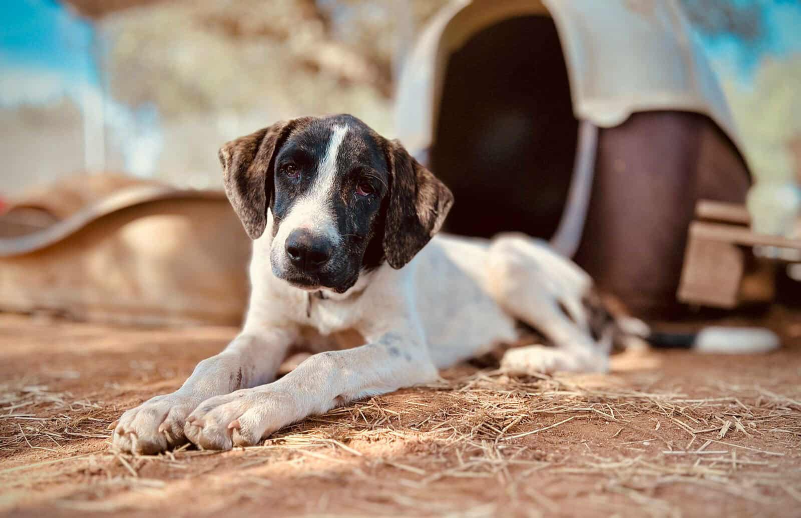Bandit wurde Anfang Mai 2025 geboren und kam als kleines, verlassenes Hundekind ganz allein zu uns ins Shelter.