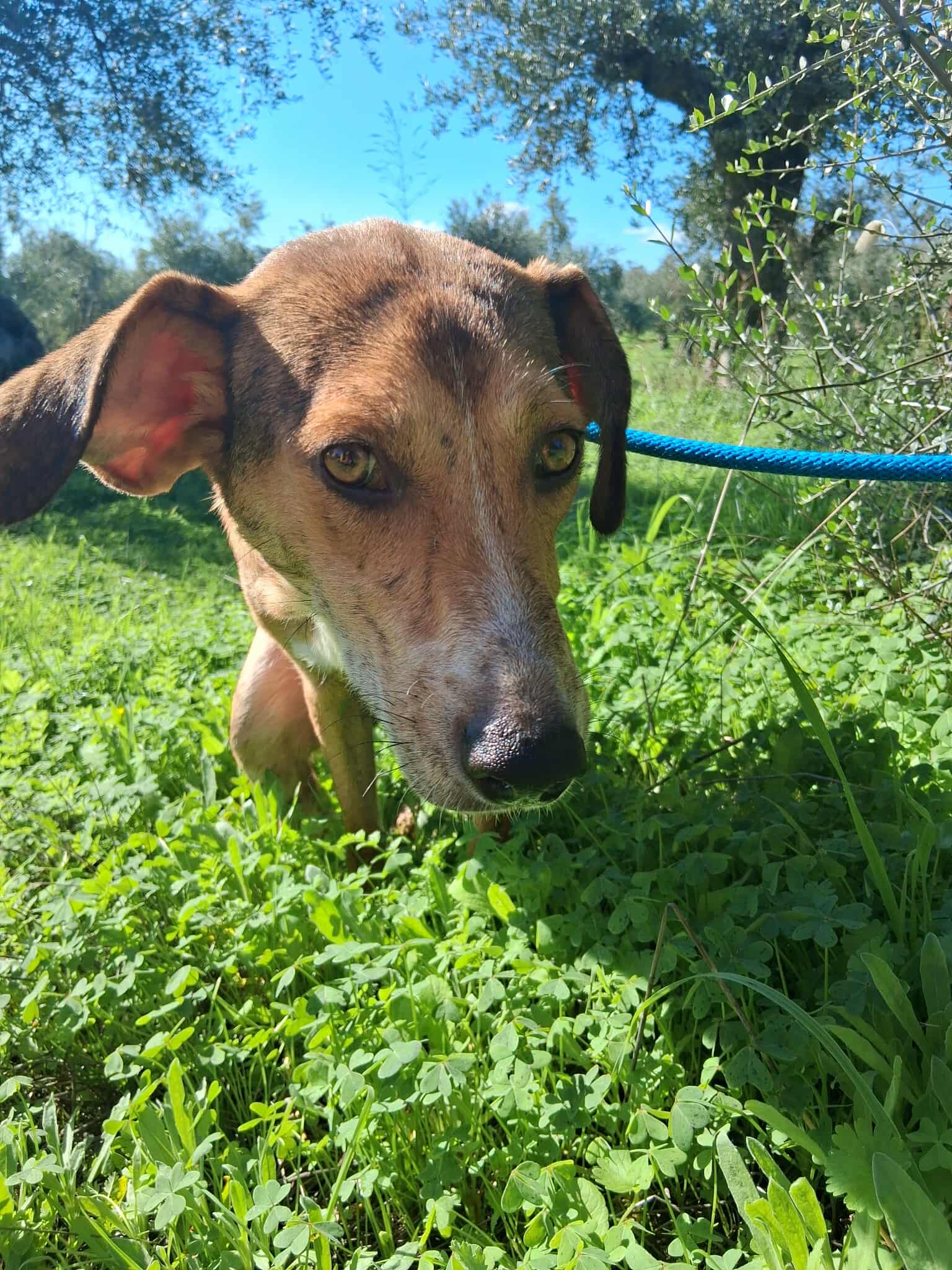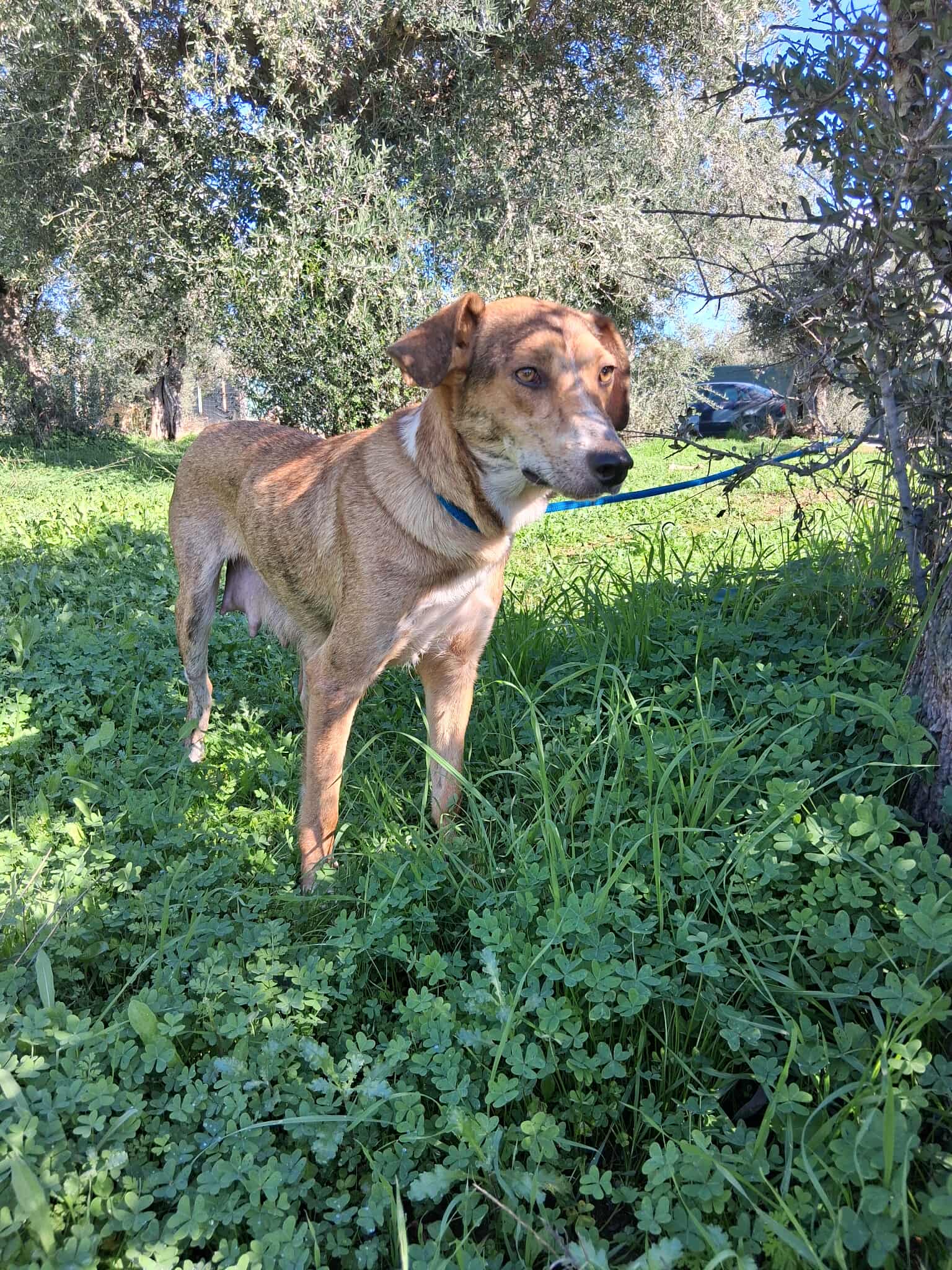 Wir vermuten, dass sie ein Zuhause hatte. Sie wurde mit einem Halsband gebracht, auf dem sich eine registrierte Nummer aus Deutschland befand. Es könnte ihr gehören, aber auch von einem anderen Hund stammen. Leider ließ sich die Nummer nicht zurückverfolgen.